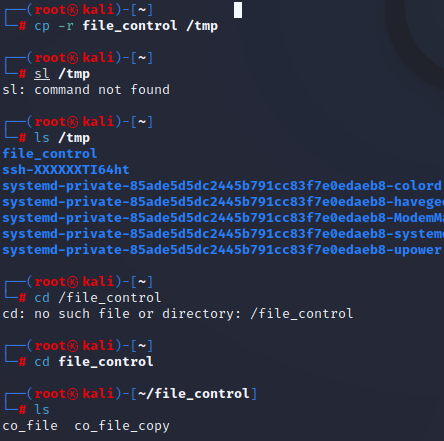 7. 6번에서 만들어진 file_control 디렉토리를 /tmp 디렉토리에 복사하기.