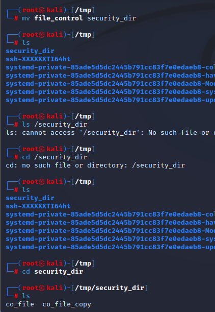 8. 7번에서 복사된 /tmp에 복사된 디렉토리 이름을 security_dir 이라고 변경하기.
