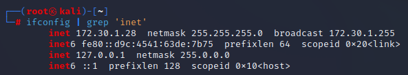 1. ifconfig 명령어 결과 중 IP 주소가 있는 줄만 출력하기.