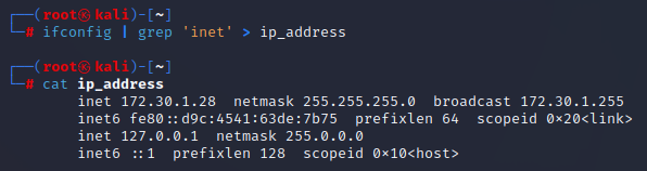 2. 1번의 출력 결과를 ip_address 라는 파일로 해서 저장하기.