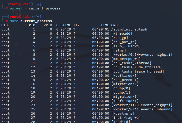 4. 현재 실행 중인 프로세스의 리스트를 current_process 라는 파일로 저장하기.