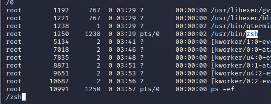 5. vi로 4번에서 만든 프로세스를 열고, zsh 이라는 글자 찾아보기.