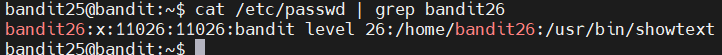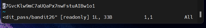 bandit26의 비밀번호는 "c7GvcKlw9mC7aUQaPx7nwFstuAIBw1o1"이다.