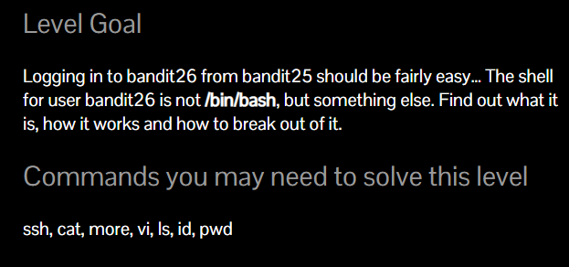 이번 문제에서는 bandit26에 로그인은 쉽다고 합니다.