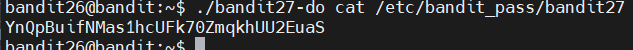 bandit27의 비밀번호는 "YnQpBuifNMas1hcUFk70ZmqkhUU2EuaS"이다.