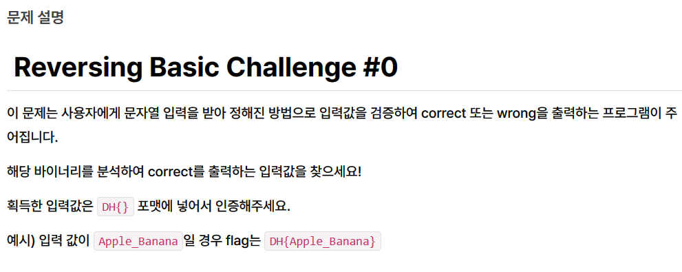 문제에 나온것 처럼 플래그 형식은 DH{...이기 때문이다.